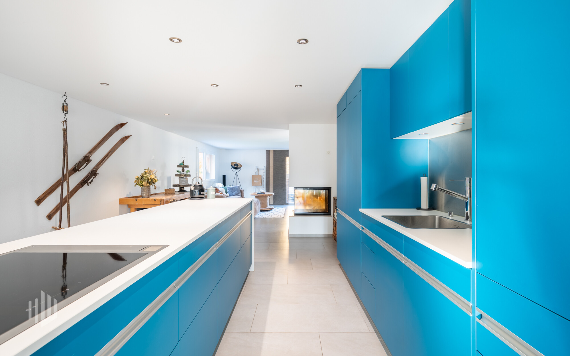 Ein besonderes Highlight ist die grosszügige Einstellhalle mit sieben Parkplätzen, welche nicht nur komfortables Parkieren ermöglicht, sondern auch den Umschwung der Liegenschaft grosszügig erweitert.